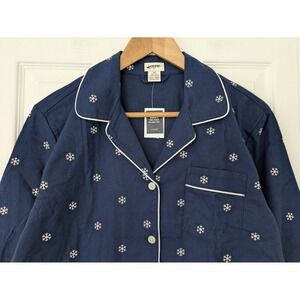 J. Crew Petite Long Sleeve Flannel Pajama Top Snowflake Womens Size PS Blue NWT