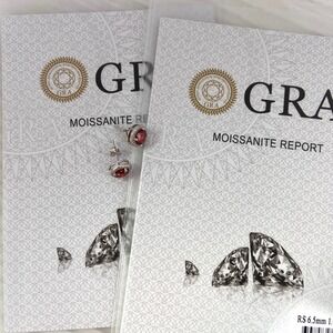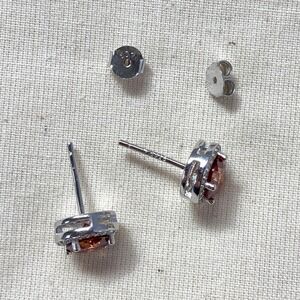925 Sterling Silver 1 CT Garnet Ruby Red Moissanite Round Stud Earrings for Pierced Ears. 2 carat total weight for the pair. Encircled by tiny clear crystal stones. Butterfly backers. New and packaged in a faux suede pouch with box and ribbon, ready for gift giving.