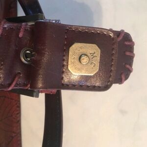 Marc Chantel Embossed leather shoulder bag with beautiful leaf design,pouch on side pocket on back ,inside pockets and flap over snap closure. Medium size