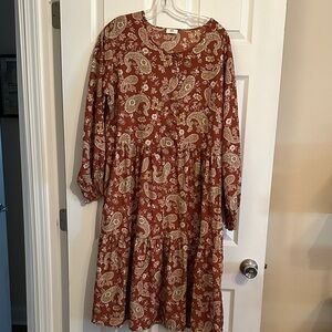 Elevate your wardrobe with this elegant paisley dress. The warm brown color offers a sophisticated touch, perfect for any occasion.