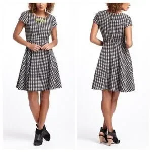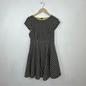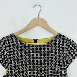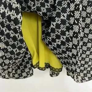 A gorgeous fit & flare style mini dress from Maeve for Anthropologie. The black and cream jacquard diamond circle print is very retro looking and pairs well with the full skirt of the dress. The yellow lining is trimmed in black lace for a super feminine feel. Pair this dress with ankle boots or flats, or throw on a jean jacket and sneakers to dress it down. Women’s size 4.