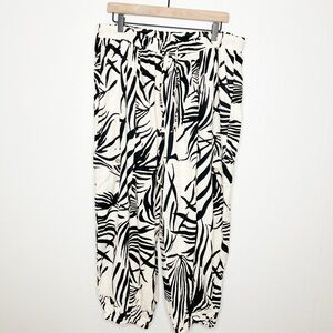 Rachel Zoe Linen Blend Tropical Palm Print Casual Pants Plus Size 2X
