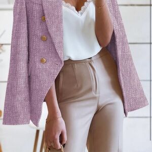 Elevate your style with this elegant pink blazer. Perfect for both professional and casual settings.