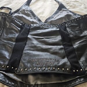 Elevate your style with this Harley-Davidson black studded halter top. Perfect for a bold, edgy look.
