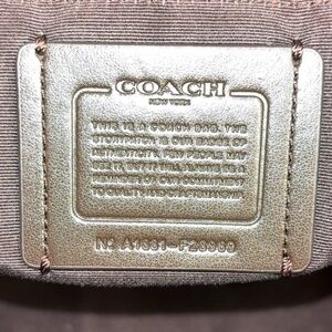 Hardware: The bag features a zip-top closure with gold-tone hardware and has flat handles.