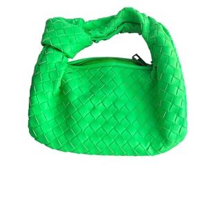Women Knotted Woven Handbag Small Size Neon Green Zipper Top - Excellent Cond!