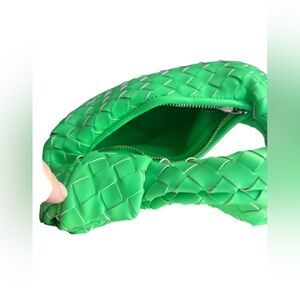 Women Knotted Woven Handbag Small Size Neon Green Zipper Top - Excellent Condition! Hobo bag Top Handle Bag - Parakeet Green