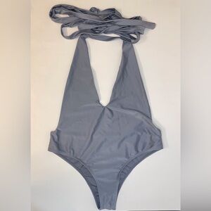L'Amorae Women’s Sexy Plunging Neck Tie Backless Bodysuit Swimsuit Size M. Great condition.