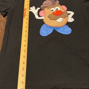 Charming black tee featuring Mr. Potato Head. Ideal for playful style.