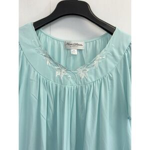 Miss Elaine Classics Blue Embroidered Floral Night Gown Size S Women's EUC