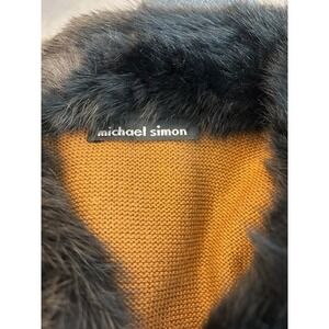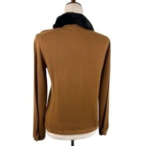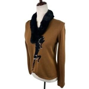 RARE Vintage Y2K Michael Simon Brown Black Cat Sweater Fur Collar Size Small