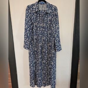 J. McLaughlin Belle Blue White Geometric Tulip Maxi Shirt Dress Sz L Cottagecore