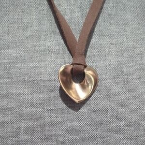 Large Statement Leather & Gold-Tone Heart Necklace – Double Strand Cord