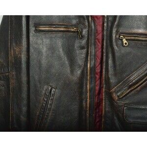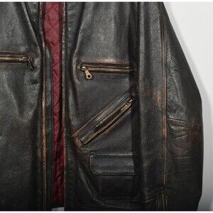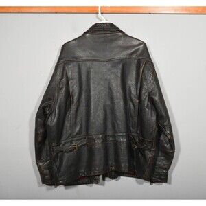 Vintage Structure Heavy Brown Leather Zip Up Car Driving Coat Jacket Sz XL
