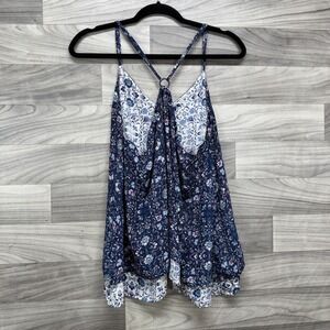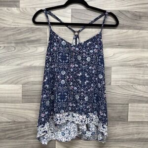 Maurices Halter Top Women's Large Blue Floral Sleeveless High Low Pullover