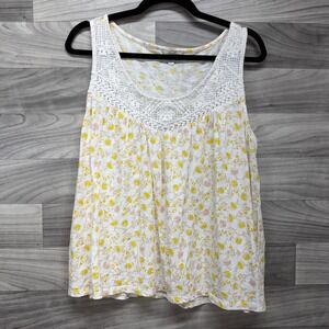 Lucky Brand Blouse Womens Medium Cream Floral Crochet Scoop Neck Sleeveless Top