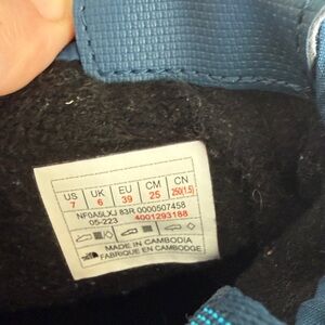 Cozy blue boots with black and white accents. Ideal for rain and snow. Durable and stylish.