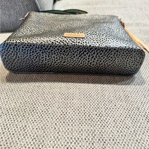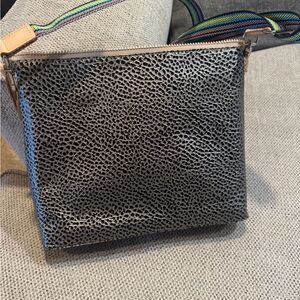 Chic black crossbody with textured design. Features a vibrant multicolor strap. Perfect for adding flair to any outfit. Carried one time…basically a brand new bag!