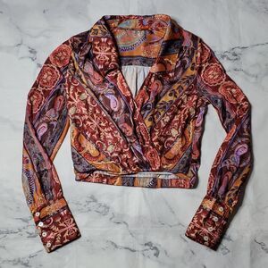 Free People Lana Paisley Print Surplice/Wrap Cropped Blouse