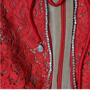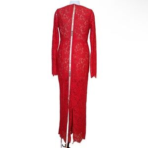 'NEW House of CB Lisandra Lace Maxi Dress Red Crystal Trim Cutout Long Sleeve XS