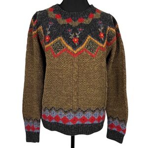 Eagles Eye Womens Size S Brown Fair Isle Floral Knit Sweater Pullover