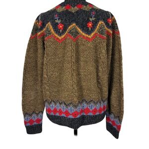 Keywords: Eagle's Eye, womens sweater, knitwear, Fair Isle, floral, embroidered, pullover, cozy, winter fashion, casual wear, boho, vintage inspired, fall style, holiday wear