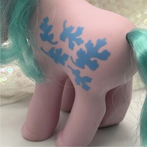 Vintage My Little Pony G1 "Pony Friend" named Oakly. She is a light purple moose with blue hair and a symbol of falling oak leaves.