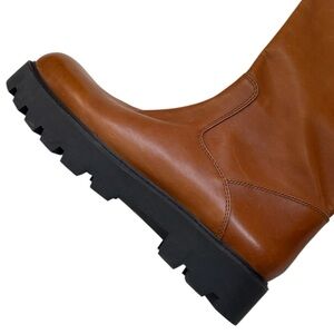 EUC Franco Sarto Leather Balin Lug Sole Wide Calf Knee High Boots Tan Size 11