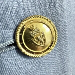 - Color is a bright pale blue with bright gold buttons (screen and lighting made the color in some images muted or yellow toned)