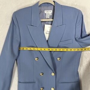 Vintage Talbots Wool Midi Skirt Suit 10 Fit 6 8 Blue Double Breasted Gold Button