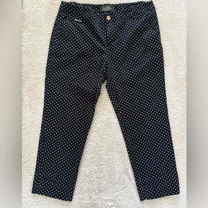 Chic Ralph Lauren petite cropped trousers in a timeless black and white polka dot print. Tailored and polished with a classic silhouette—perfect for work, casual chic, or everyday wear.