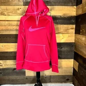 Bright pink Nike hoodie with iconic swoosh. Features front pocket and hood.