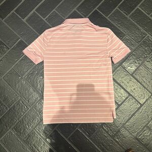 Classic Ralph Lauren boys’ polo in a fresh pink and white stripe. Youth Size 18 (140/68). Made from moisture-wicking performance fabric — perfect for school, dressy occasions, or summer outings. Soft, breathable, and stylish with the iconic navy Polo logo on the chest. Gently worn, excellent condition.