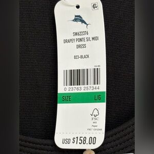 NWT Tommy Bahama Drapey Ponte Sleeveless Black Tank Midi Dress Large
