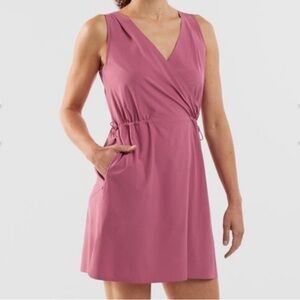 Spin it right 'round: scoop or wrap neck, there's no wrong way to take a Round Trip. This updated, shorter Round Trip Dress is a special case of practical magic, with double the ways to wear it - and that's far from all. Adjust the waist cinches to fit your mood, secure your goodies in zippable hand pockets. (There are two, so you'll always have one on the right no matter which way you're wearing it.) Like the rest of the collection it's dressed up for out on the town, yet still ready to get down. Bonded hem and necklines for a clean finish and to keep it light. Made of our Nimblene™, the wrinkle-shirking stretch fabric that packs down tiny, hand washes easy, and dries super fast. UPF 50+, too. By Title Nine.