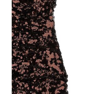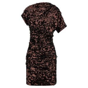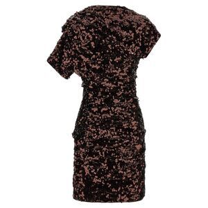'Brown Sequins Mini' dress in fabric covered with all-over sequins with draping, asymmetrical neckline, short sleeves, side zip closure, lining.