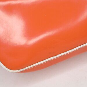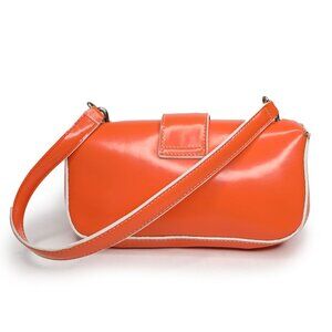 Vintage Guess Y2K Mini Baguette Shoulder Bag Glossy Orange Faux Leather White Trim Logo