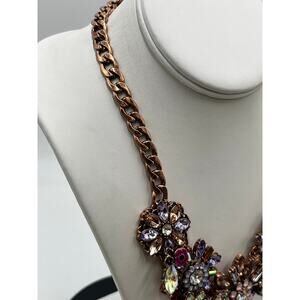 Joan Rivers Enamel Rhinestones Pink Purple Language of Flowers Copper Necklace. Features a floral design with multiple flower-shaped clusters adorned with crystals and enamel work.