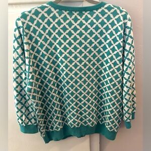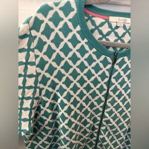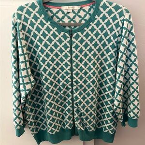 Boden women’s sz 18 zip front sweater cardigan teal & off white