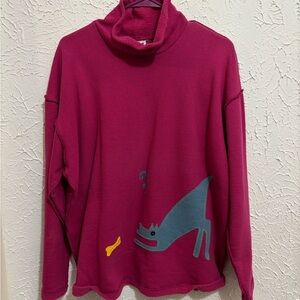 Vibrant magenta sweater with playful graphic. Cozy turtleneck style. Perfect for casual wear.