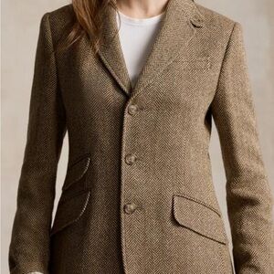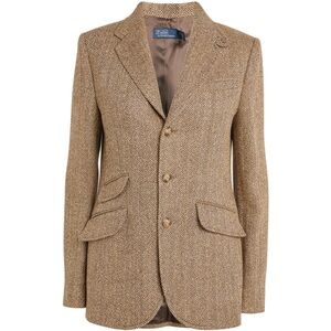 •Brand: Ralph Lauren Sport •Size: 6 •Fabric:Wool/Cashmere blend • Color: Camel / tan herringbone •Condition: Excellent pre-owned condition •Fully lined •Tailored fit •Front button closure •Flap pockets Measurements available in photos.