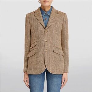 Classic Ralph Lauren Sport fitted blazer in a beautiful camel/tan herringbone wool cashmere blend.