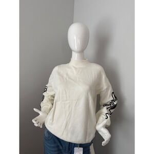 Commense Crew Neck Pullover Sweater Abstract Embroidery on Sleeves size M