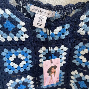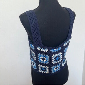 NWT- Adorable crotchet cropped top in beautiful shades of blue. Can be worn to the beach, pool, or to a fun night out with jeans. Size medium 55% cotton and 45% acrylic.