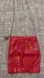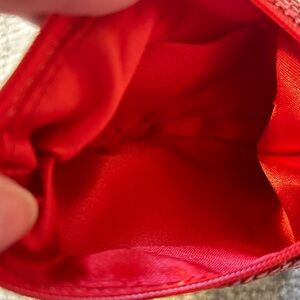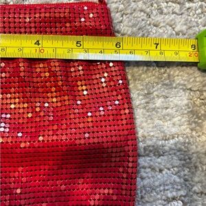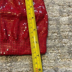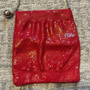 -Red mesh metal with silver ball zipper pull and long silver strap