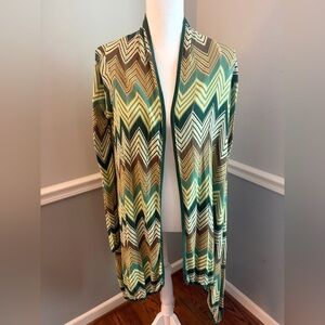 BCBGMaxAzria Green Chevron Asymmetrical Open Front Silk Cardigan – Size M