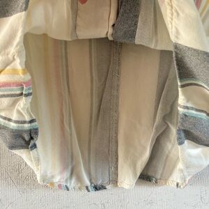 Vibrant striped cropped blouse with button-down front. Features a tie-front detail. Handwoven.