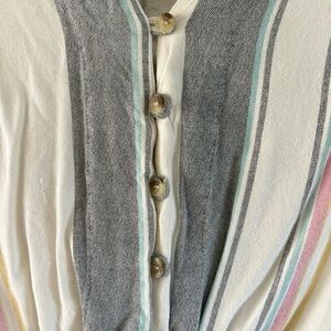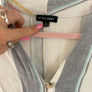 Style Envy Cropped Colorful Striped Button-Down Tie Front Blouse Single Stitch S