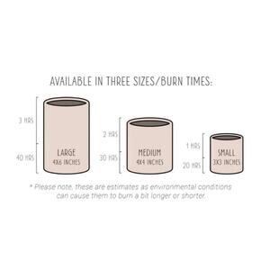 Spiral Light Candles are available in three sizes with varying burn times: