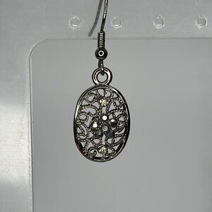 These silver earrings feature a delicate dangle design with intricately etched medallion-like charms, offering a vintage-inspired elegance. The antiqued finish adds a classic touch, making them perfect for everyday wear.